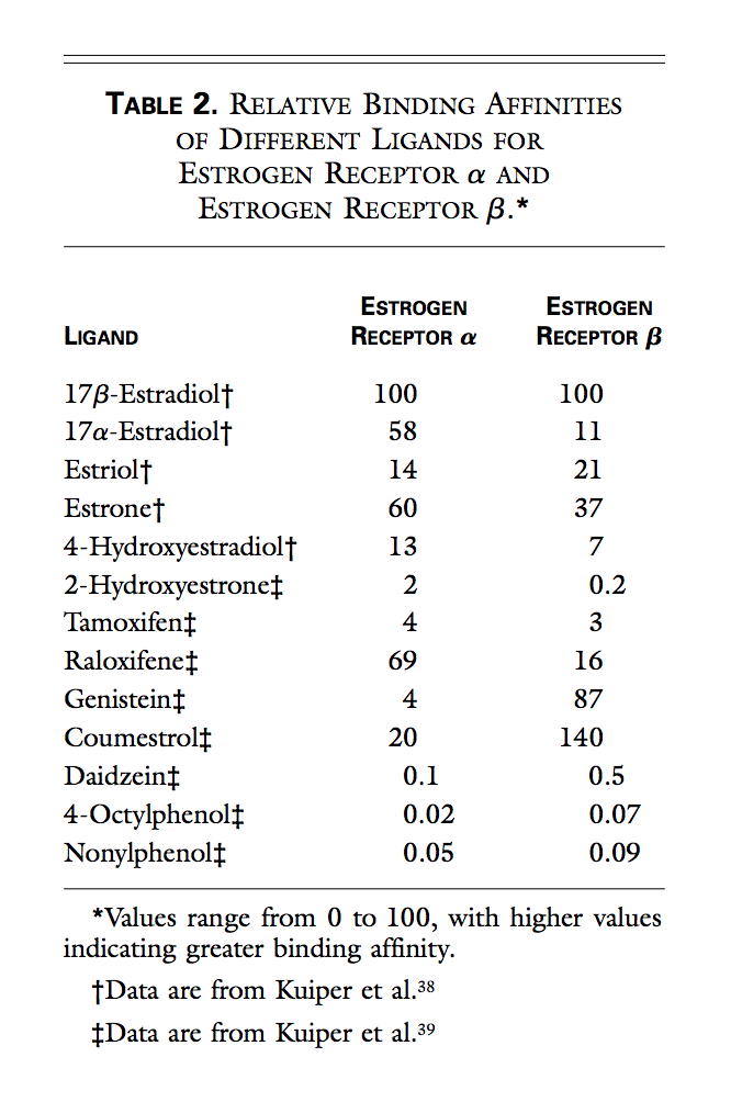 Kuiper, G. G., Carlsson, B., Grandien, K., Enmark, E., Häggblad, J., Nilsson, S., & Gustafsson, J. (1997). Comparison of the Ligand Binding Specificity and Transcript Tissue Distribution of Estrogen Receptors α and β. Endocrinology, 138(3), 863–870. [DOI:10.1210/endo.138.3.4979]
